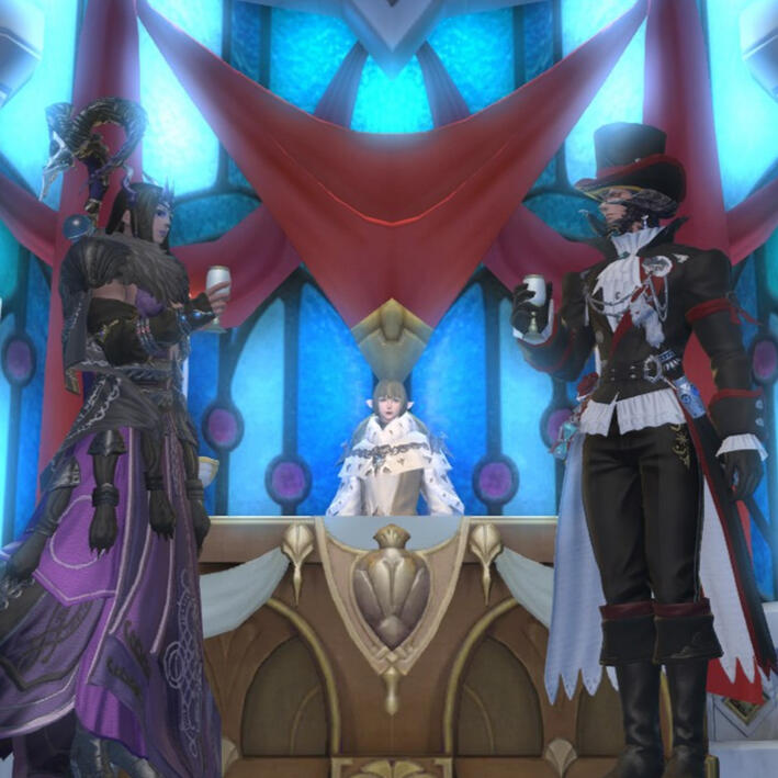 Graceful and Reverent traveled Hydaelyn for two years eventually landing in Ishgard where she met her, now, husband Cu Chulain. She eagerly sought to learn the ways of the dragoon, their grace and prowess igniting a newfound flame within the disguised Hrothgar. And it was Cu Chulain she had to win over to get the training she desired. Though, winning his heart* was a whole different (and unexpected) story.
